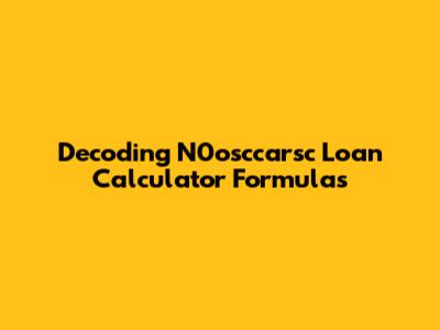 Decoding N0osccarsc Loan Calculator Formulas