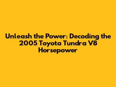 Hey gearheads and Tundra fans! Let's dive deep into one of the most iconic trucks of its era: the 2005 Toyota Tundra V8. If you've ever wondered just how much grunt this beast packs under the hood, you've come to the right place, guys. The 2005 model year was a significant one for the Tundra, especially with its V8 engine options. We're talking about serious power designed to tackle tough jobs, haul heavy loads, and provide a thrilling driving experience. Understanding the horsepower and torque figures isn't just about bragging rights; it's crucial for knowing what your truck can do, how it performs under various conditions, and even for maintenance and upgrade decisions. So, buckle up as we explore the heart of the 2005 Tundra V8, dissecting its performance capabilities and what makes it a legend on the road and off it. Whether you're a seasoned Tundra owner or looking to get your hands on one, this deep dive will give you all the juicy details on its impressive V8 engine.