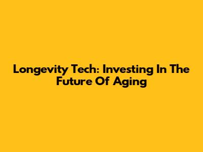 Longevity Tech: Investing In The Future Of Aging