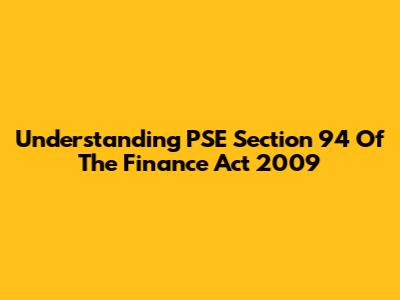 Understanding PSE Section 94 Of The Finance Act 2009