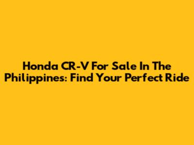 Honda CR-V For Sale In The Philippines: Find Your Perfect Ride