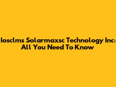 Iosclms Solarmaxsc Technology Inc: All You Need To Know