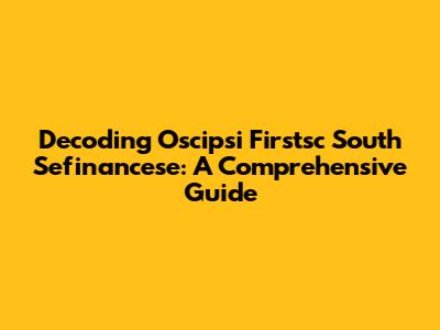 Decoding Oscipsi Firstsc South Sefinancese: A Comprehensive Guide