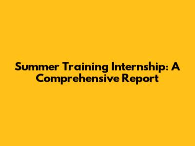 Summer Training Internship: A Comprehensive Report