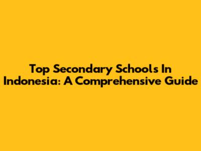 Top Secondary Schools In Indonesia: A Comprehensive Guide