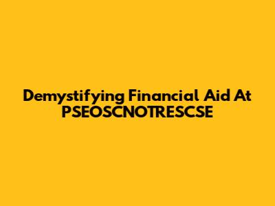 Demystifying Financial Aid At PSEOSCNOTRESCSE