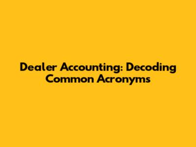 Dealer Accounting: Decoding Common Acronyms