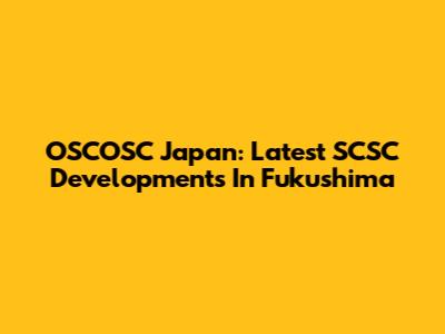 OSCOSC Japan: Latest SCSC Developments In Fukushima