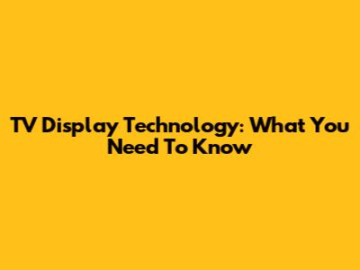 TV Display Technology: What You Need To Know