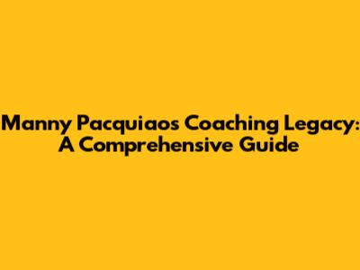 Manny Pacquiao's Coaching Legacy: A Comprehensive Guide