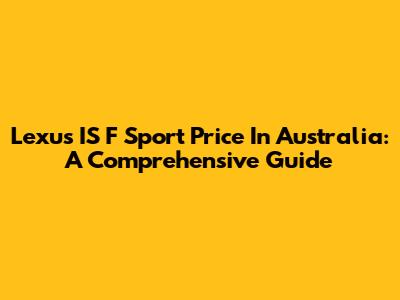 Lexus IS F Sport Price In Australia: A Comprehensive Guide