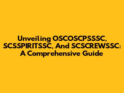 Unveiling OSCOSCPSSSC, SCSSPIRITSSC, And SCSCREWSSC: A Comprehensive Guide