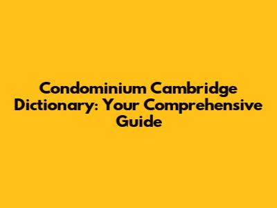 Hey there, real estate enthusiasts! Ever wondered what a condominium really is? Well, you're in the right place! We're diving deep into the condominium Cambridge Dictionary definition and everything you need to know about these popular housing options. Get ready for a fun, informative journey through the world of condos, covering everything from legal jargon to lifestyle perks. So, grab a coffee, sit back, and let's explore! This guide is designed to be your go-to resource, breaking down complex concepts into easy-to-understand terms. We'll be using the Cambridge Dictionary as our primary source for definitions, ensuring we're on the same page when it comes to the official meaning of “condominium”.