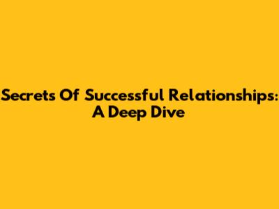 Secrets Of Successful Relationships: A Deep Dive