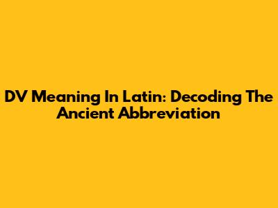 DV Meaning In Latin: Decoding The Ancient Abbreviation