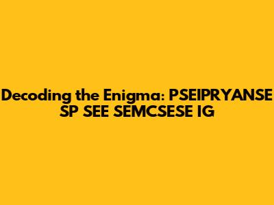 Decoding acronyms can feel like a daunting task, especially when faced with an enigmatic string like PSEIPRYANSE SP SEE SEMCSESE IG. However, by employing the strategies and tools outlined in this article, you can approach the challenge with confidence. Remember to consider the context, break down the acronym into smaller parts, utilize online resources, and don't hesitate to ask for help. While the meaning of PSEIPRYANSE SP SEE SEMCSESE IG remains elusive without further context, the principles of acronym decoding apply universally.
