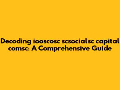 Let's dive into the intriguing world of "iooscosc scsocialsc capital comsc." What exactly does this seemingly cryptic term mean, and why should you care? In this comprehensive guide, we'll break down each component, explore its potential significance, and provide valuable insights to help you understand its relevance in today's digital landscape. So, buckle up, guys, and let's get started!