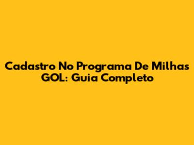 Cadastro No Programa De Milhas GOL: Guia Completo