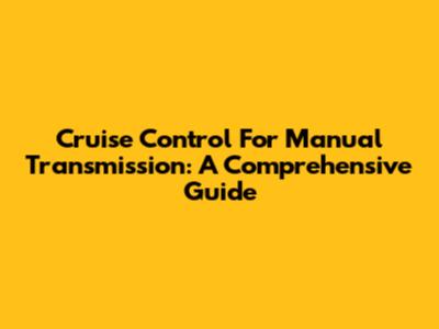 Cruise Control For Manual Transmission: A Comprehensive Guide
