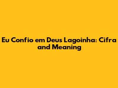 Hey guys! Ever heard that beautiful, soul-stirring song, Eu Confio em Deus from Lagoinha? It’s one of those tunes that just sticks with you, right? Whether you're a seasoned musician or just love to sing along, understanding the cifra (that's Portuguese for chords/tabs) can really help you connect with the song on a deeper level. Plus, knowing the story and meaning behind the lyrics makes it even more special. So, let's dive into everything you need to know about "Eu Confio em Deus"! We'll explore the chords, the melody, and the powerful message it carries. Trust me, it's gonna be a blast!