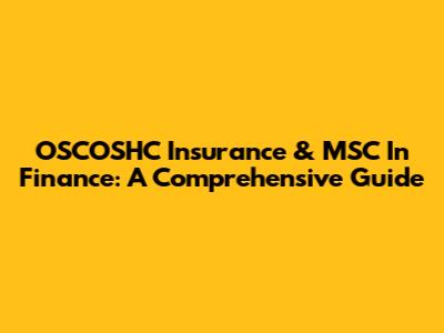 OSCOSHC Insurance & MSC In Finance: A Comprehensive Guide