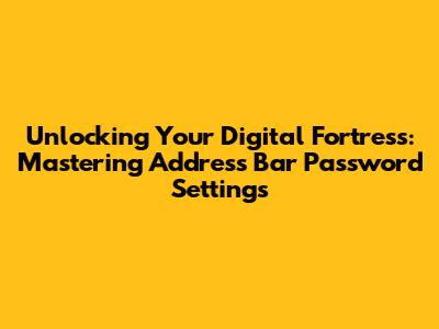 Unlocking Your Digital Fortress: Mastering Address Bar Password Settings