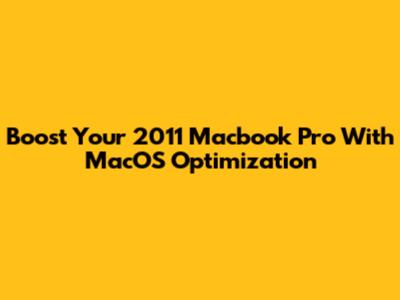 Boost Your 2011 Macbook Pro With MacOS Optimization