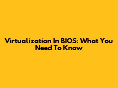 Virtualization In BIOS: What You Need To Know