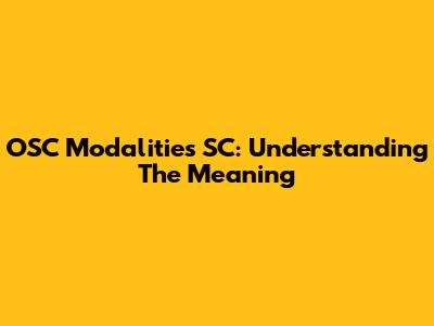 OSC Modalities SC: Understanding The Meaning
