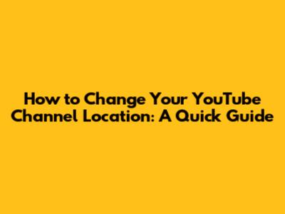 Step-by-Step Guide: Changing Your YouTube Channel Location
