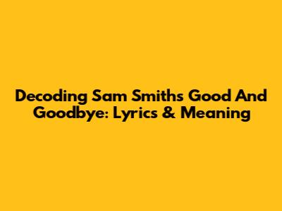 Decoding Sam Smith's 'Good And Goodbye': Lyrics & Meaning