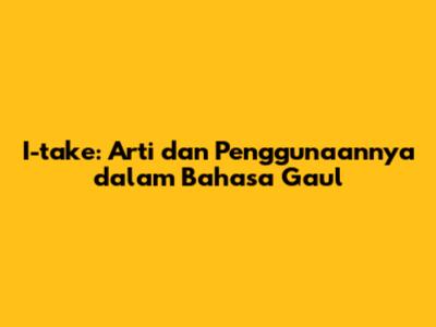 Bahasa gaul terus berkembang, dan salah satu istilah yang mungkin sering kamu dengar adalah "i-take." Tapi, i-take artinya apa sih dalam bahasa gaul? Nah, di artikel ini, kita bakal bahas tuntas makna, asal-usul, dan contoh penggunaannya biar kamu nggak ketinggalan zaman. Yuk, simak!