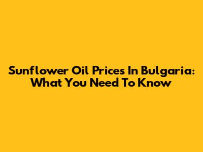 Sunflower Oil Prices In Bulgaria: What You Need To Know
