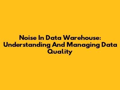 Noise In Data Warehouse: Understanding And Managing Data Quality