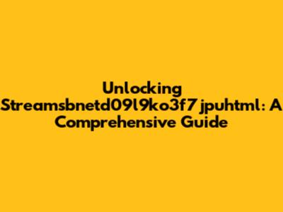 Unlocking Streamsbnetd09l9ko3f7jpuhtml: A Comprehensive Guide