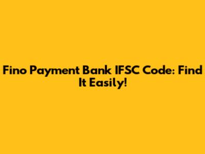 Fino Payment Bank IFSC Code: Find It Easily!