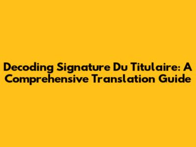 Decoding 'Signature Du Titulaire': A Comprehensive Translation Guide