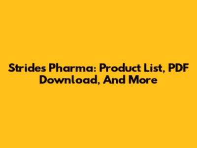 Strides Pharma: Product List, PDF Download, And More