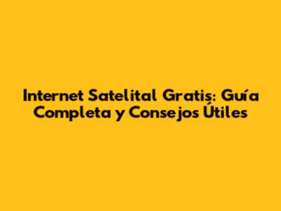 Internet Satelital Gratis: Guía Completa Y Consejos Útiles