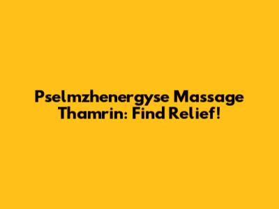 Pselmzhenergyse Massage Thamrin: Find Relief!