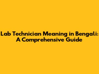 Lab Technician Meaning In Bengali: A Comprehensive Guide
