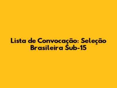 Lista De Convocação: Seleção Brasileira Sub-15
