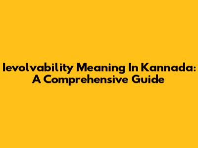 Ievolvability Meaning In Kannada: A Comprehensive Guide