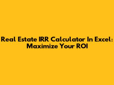 Real Estate IRR Calculator In Excel: Maximize Your ROI