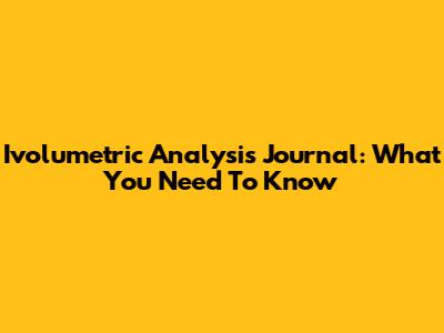 Ivolumetric Analysis Journal: What You Need To Know