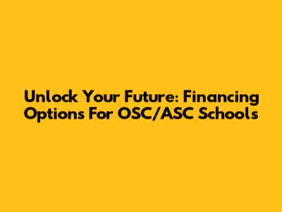 Unlock Your Future: Financing Options For OSC/ASC Schools