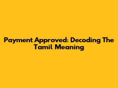 Payment Approved: Decoding The Tamil Meaning