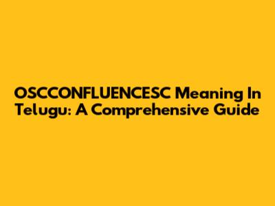 OSCCONFLUENCESC Meaning In Telugu: A Comprehensive Guide