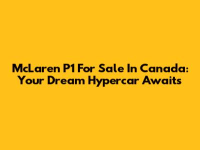 McLaren P1 For Sale In Canada: Your Dream Hypercar Awaits