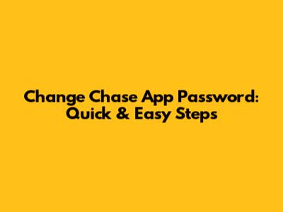 Change Chase App Password: Quick & Easy Steps